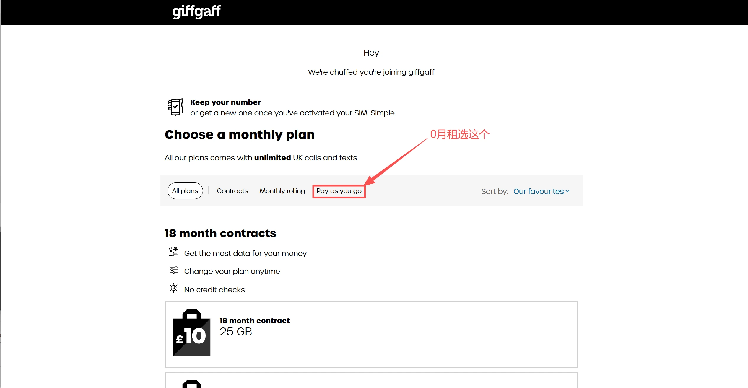 页面会推荐很多月租套餐(Monthly Plans)。