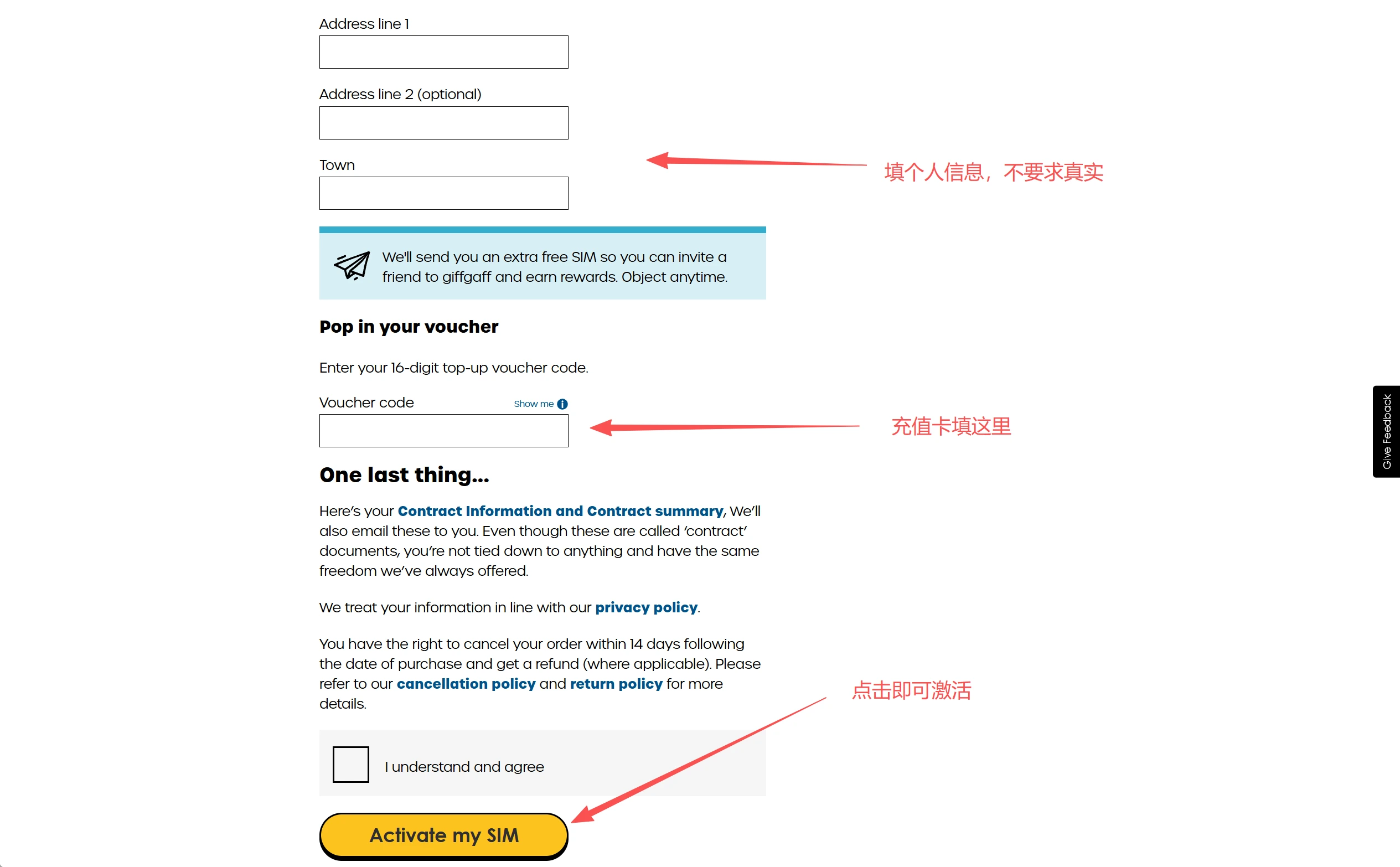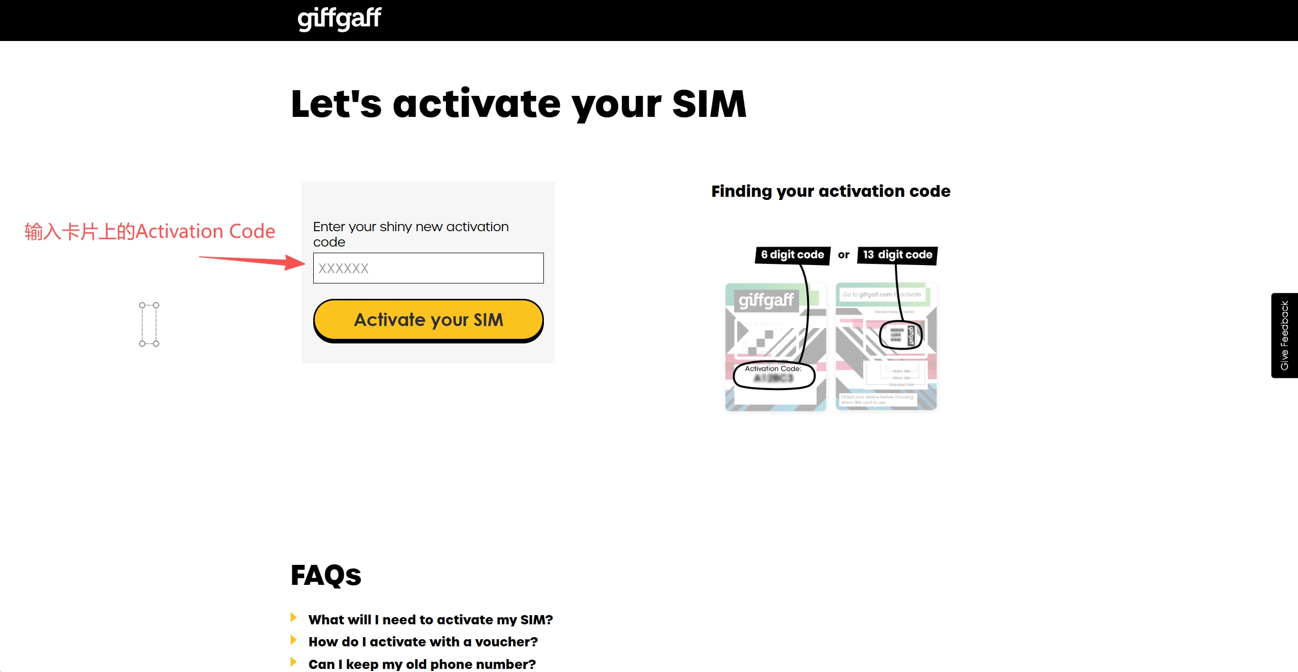 访问激活页面:giffgaff.com/activate