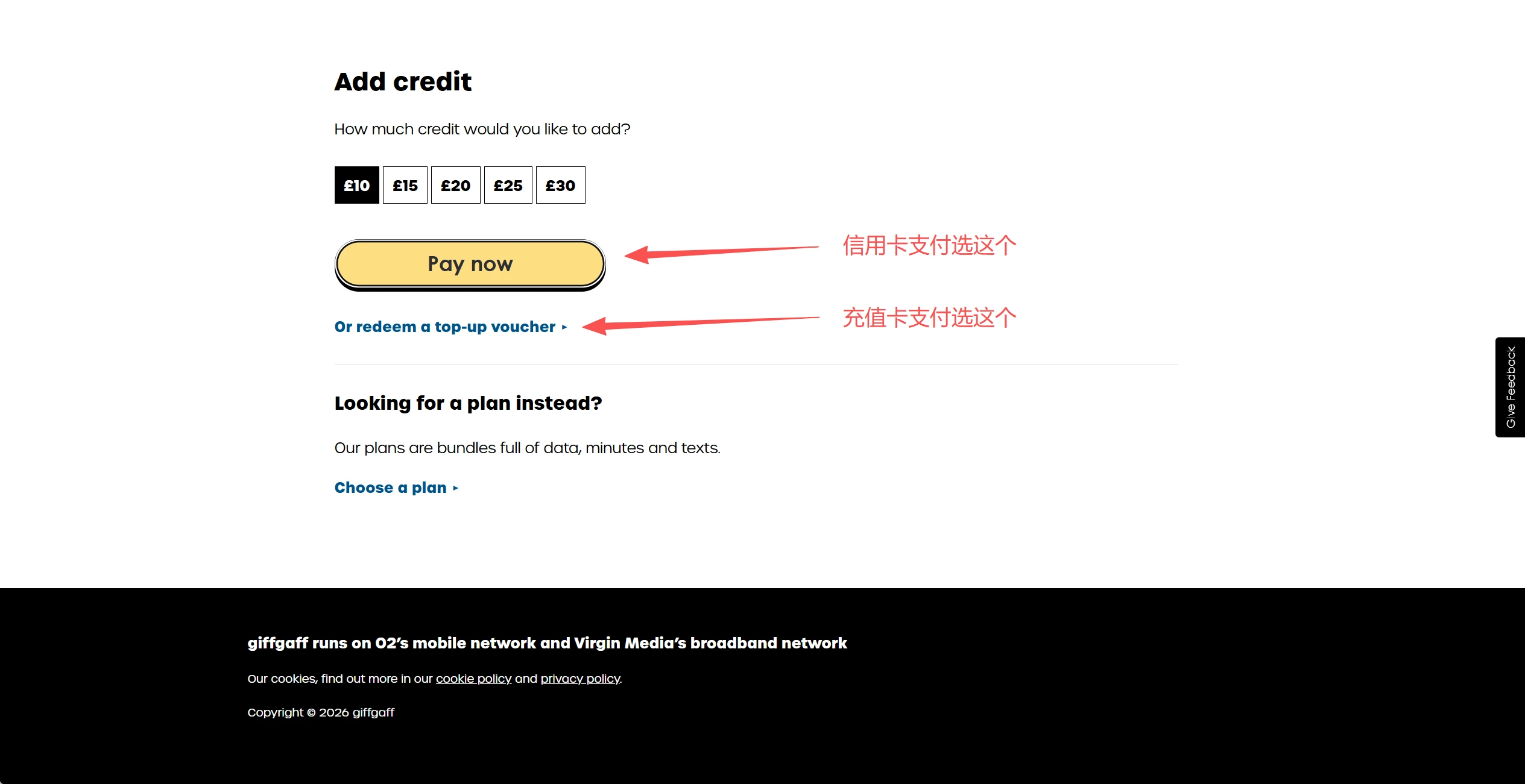 支付:一张 Visa 或 MasterCard 信用卡/淘宝购买充值卡(用于激活时充值 10 英镑)。
